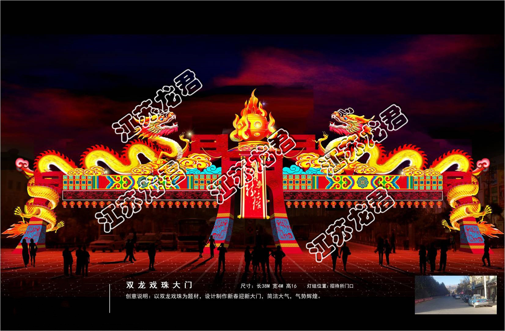 彩燈-雙龍戲珠彩門燈